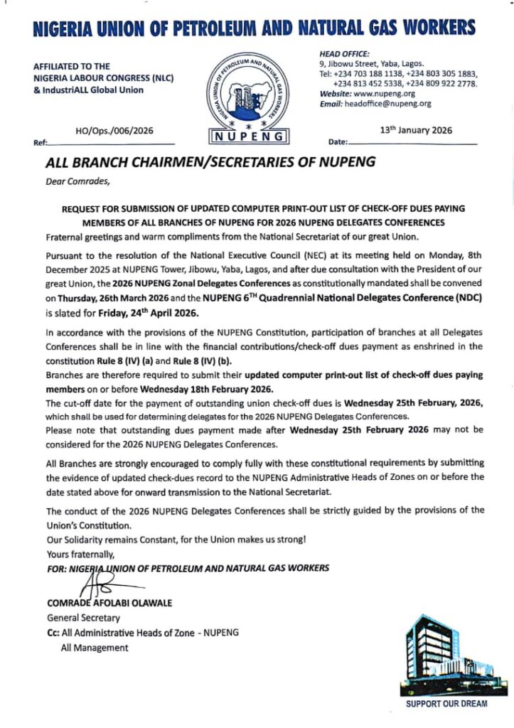 The Nigeria Union of Petroleum and Natural Gas Workers (NUPENG)- TEPNG Branch and the Management of TotalEnergies EP Nigeria Limited (TEPNG) formally opened their 2026 Annual Collective Bargaining Negotiations at the Lagos Continental Hotel, Victoria Island.