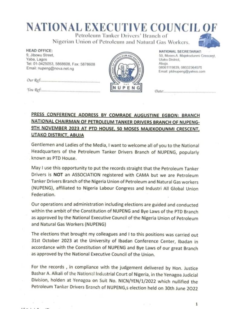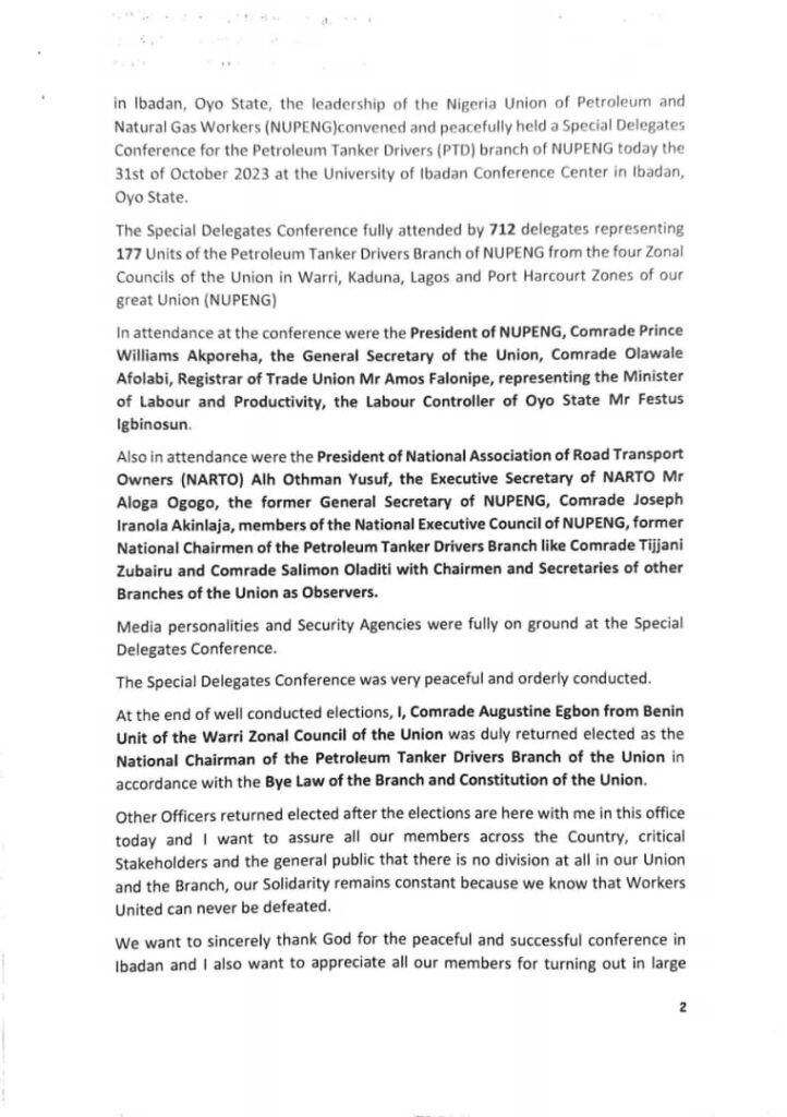 The President and General Secretary on behalf of the National Executive Council (NEC) and the entire rank and file members of the Nigeria Union of Petroleum and Natural Gas Workers (NUPENG), bring you warm fraternal greetings on this auspicious occasion of 2024 Worker’s Day, which is the annual celebration of workers' resilience, dedication, and contribution to the progress of our great nation.