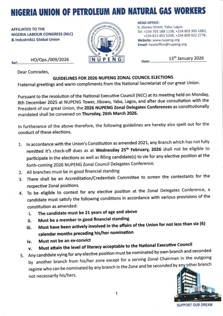 GUIDELINES FOR 2026 NUPENG ZONAL COUNCIL ELECTIONS
