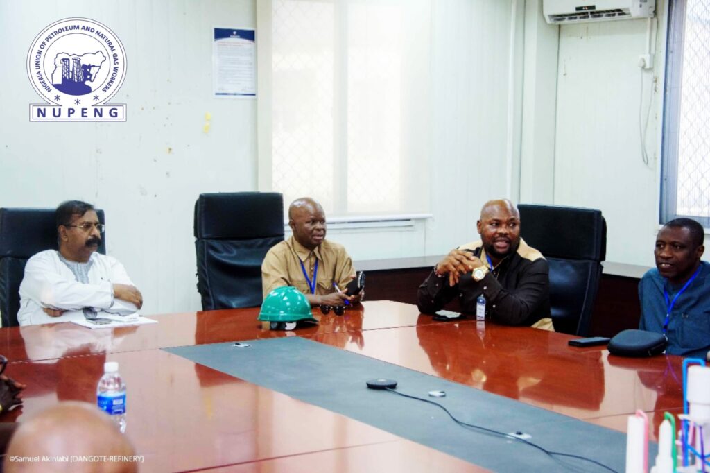 Earlier in the week, the leadership teams of the Nigeria Union of Petroleum and Natural Gas Workers (NUPENG) and the Petroleum and Natural Gas Senior Staff Association (PENGASSAN) paid a courtesy visit to Dangote Refinery and Petrochemical Company Limited, located in the Free Trade Zone, Ibeju Lekki, Lagos.