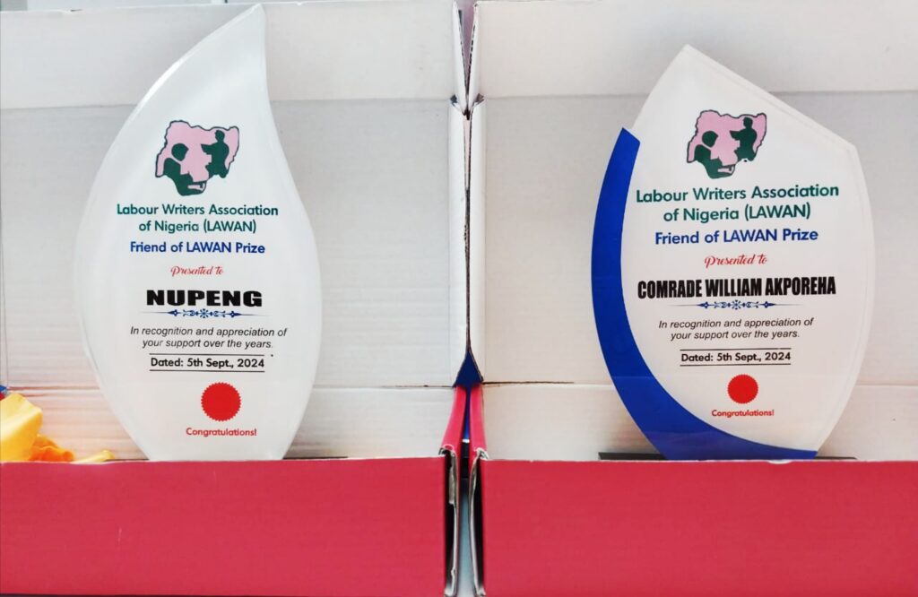 On Thursday, September 5, 2024, Comrade (Prince) Williams Akporeha and the Nigeria Union of Petroleum and Natural Gas Workers (NUPENG) were honored with the “Friend of LAWAN Prize” by the Labour Writers Association of Nigeria (LAWAN). This award recognizes their longstanding support for LAWAN.