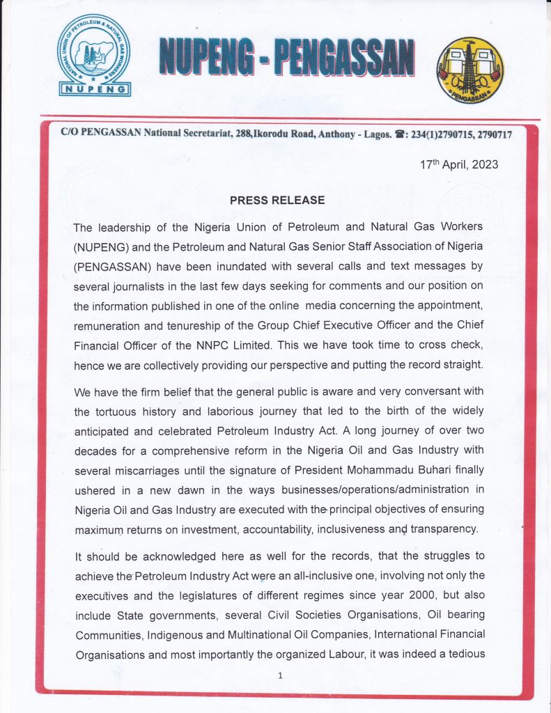 The National Leadership of Nigeria Union of Petroleum and Natural Gas Workers... read more