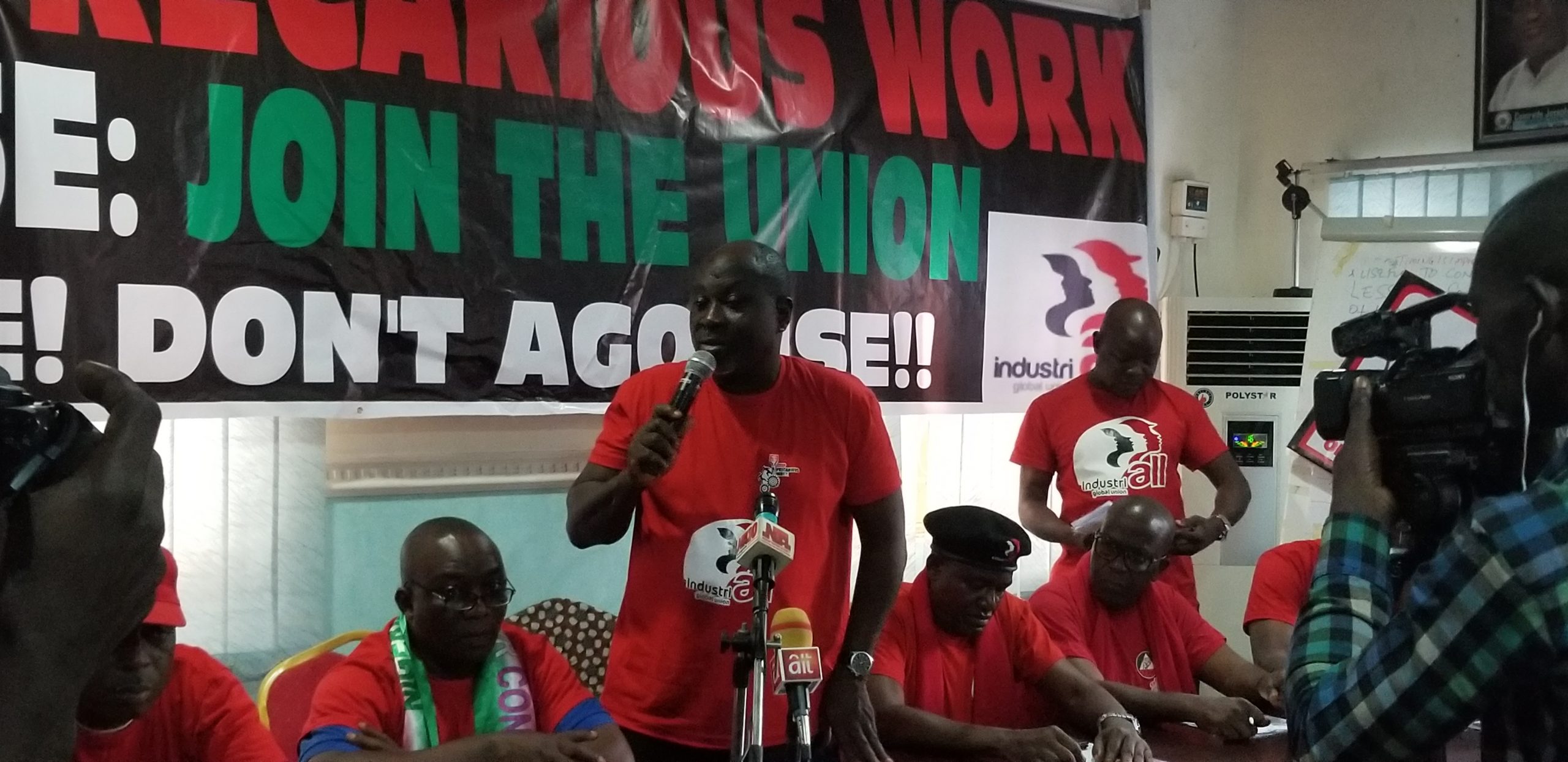 In Nigeria, IndustriALL affiliates including National Union of Textile, Garment and Tailoring Workers of Nigeria (NUTGTWN), National Union of Chemical, Footwear, Rubber and Non-Metallic Product Employees (NUCFRLANMPE), National Union of Electricity Employees (NUEE), Nigeria Union of Petroleum and Natural Gas Workers(NUPENG), Steel and Engineering Workers Union of Nigeria(SEWUN), Petroleum and Natural Gas Senior Staff Association(PENGASSAN), Chemical and Non-metallic Product Senior Staff Association (CANMPSSAN) and AUTOBATE join the global force of over 50 million members taking action against all forms of precarious work.